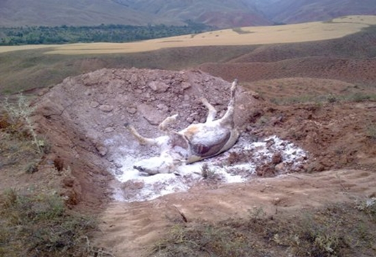 نظارت اداره دامپزشکی آوج بردفن بهداشتی وضدعفونی محل دفن لاشه های گوسفندان صاعقه زده